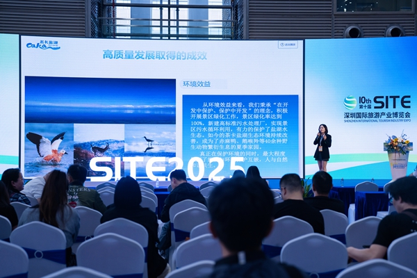 在专场推介环节,茶卡盐湖景区主要以今年全力推进国家5A级旅游景区创建工作,景区加速智慧化建设,新增智能导览系统与智慧旅游体验中心,以科技优化游览全流程服务,始终坚持以游客体验为中心,全面提升景区服务品质和管理水平为推介内容。同时,景区重点打造的“茶卡奇缘”盐雕艺术群,将整体盐雕划分为神话传说、历史人文、梦幻童话三大主题区域,让游客在互动解谜中深度感受盐文化的厚重底蕴。截至目前,景区年客流量近290万。