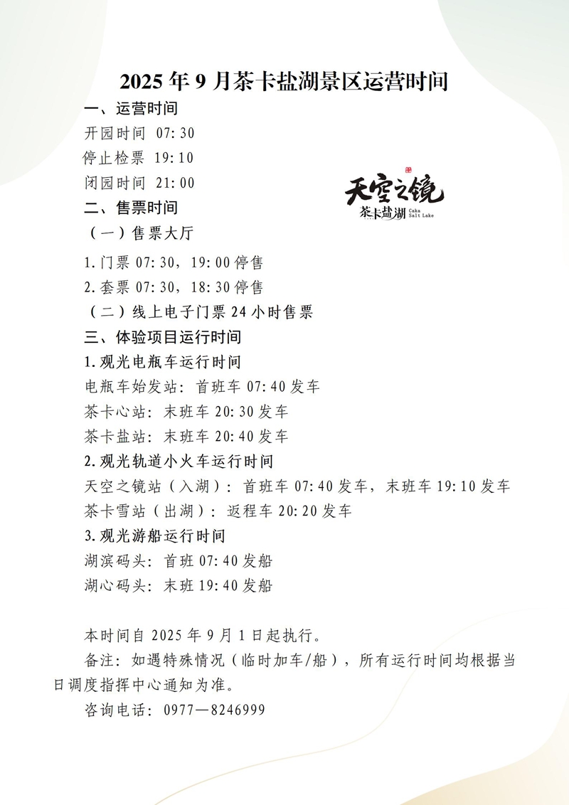 The operation time of Chaka Salt Lake Scenic Area in September 2025