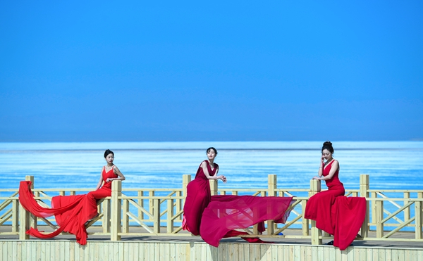 结晶爱情观光平台 ,位于铁轨西侧,采用防腐木地板及台阶铺设,面积1740平方米,全长142米,栏杆525米,连接盐栈道与盐湖,其主题为”真 爱如盐,为爱带盐”,是游客亲近盐湖的最佳平台,也成为茶卡盐湖景区内新的网红打卡点。