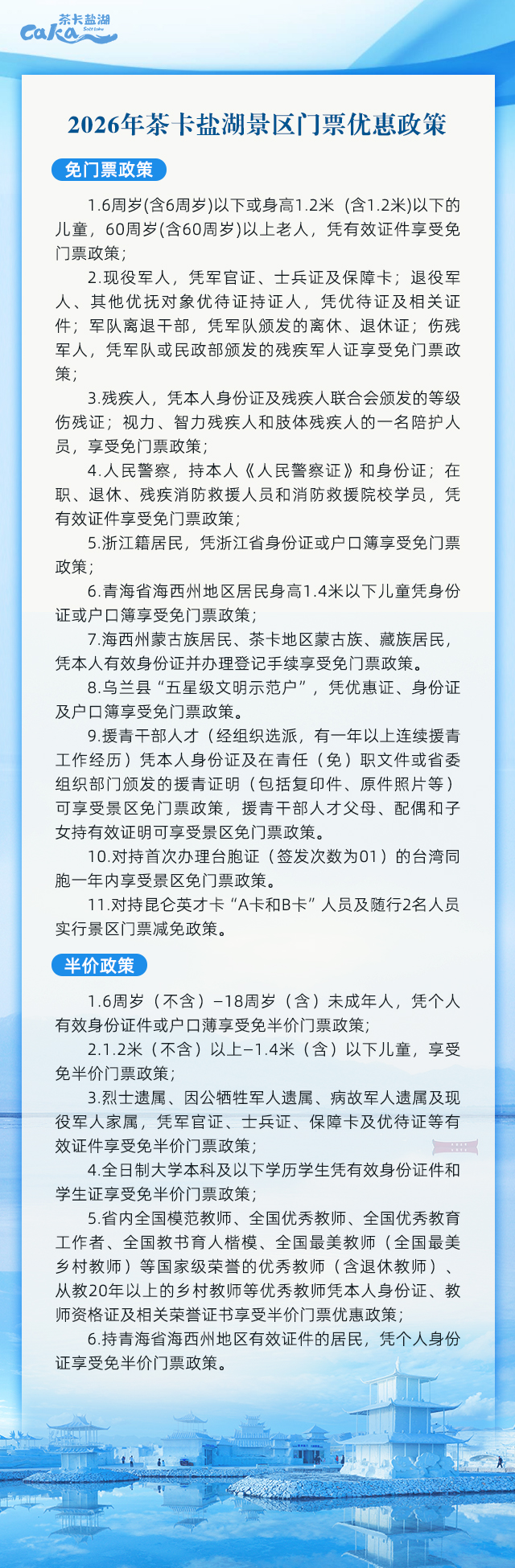 2026年茶卡盐湖景区门票优惠政策